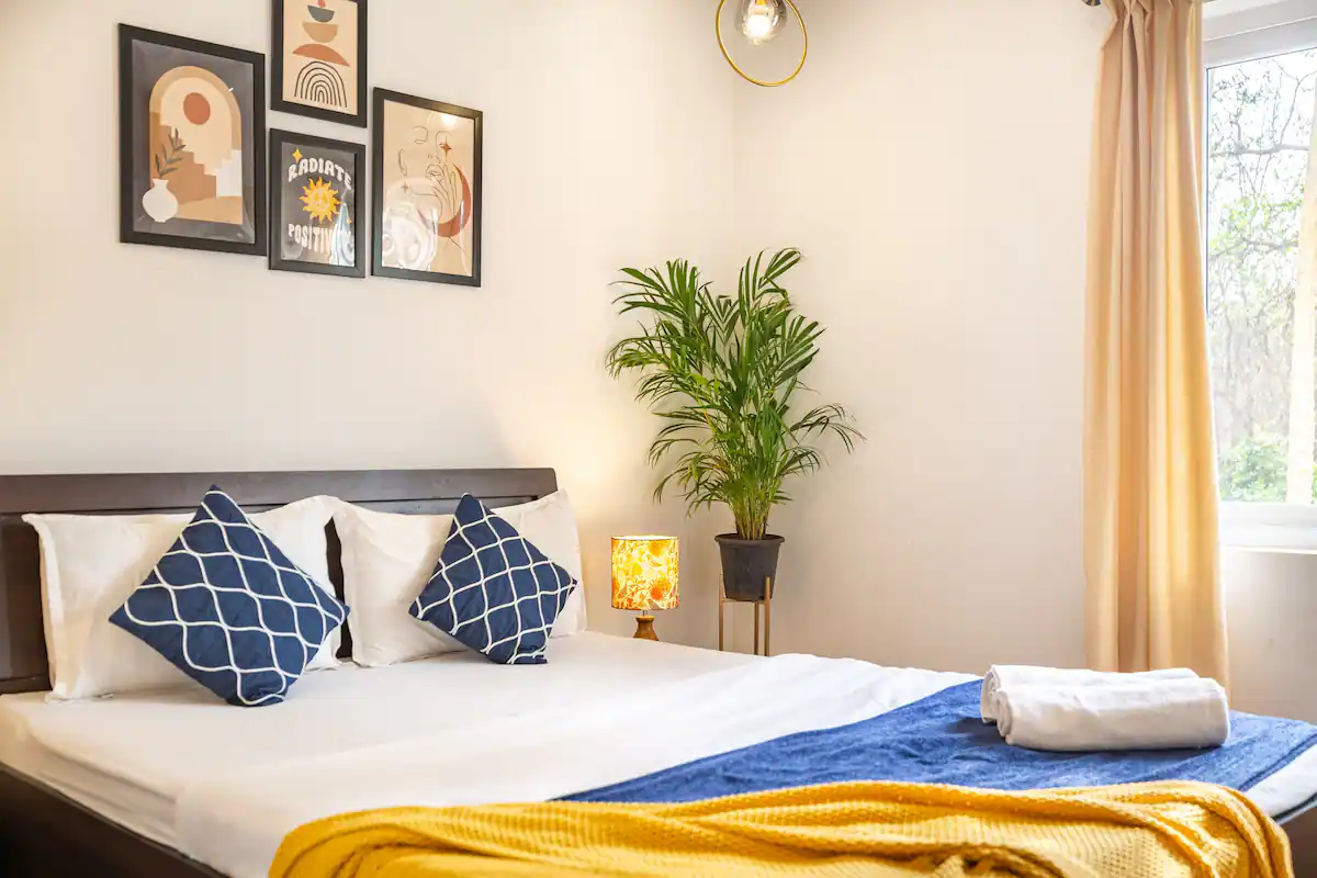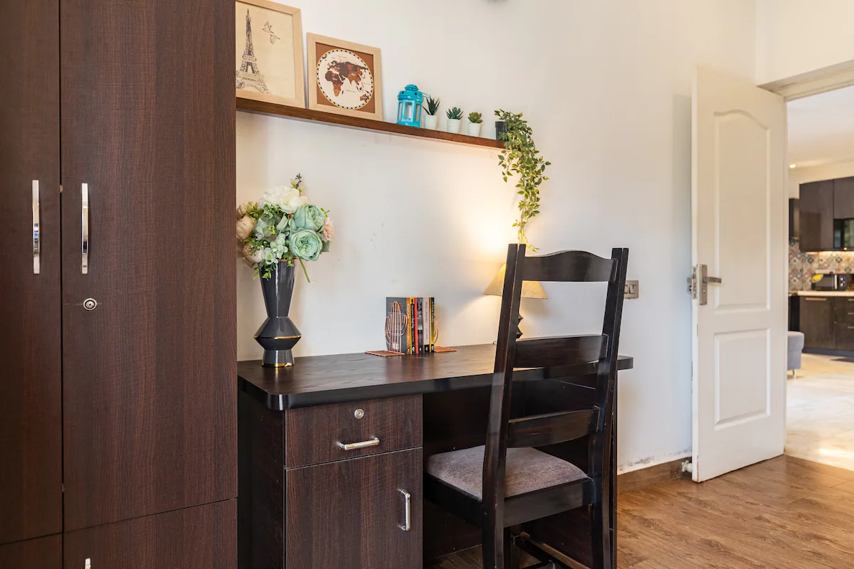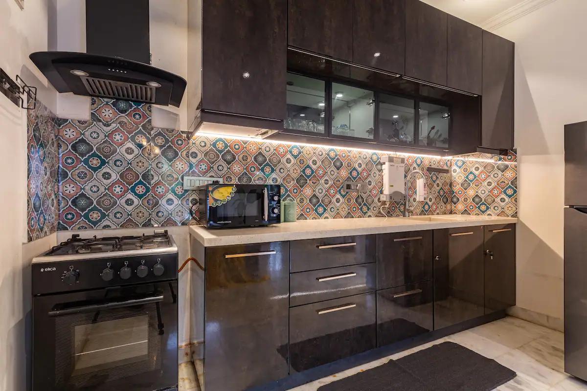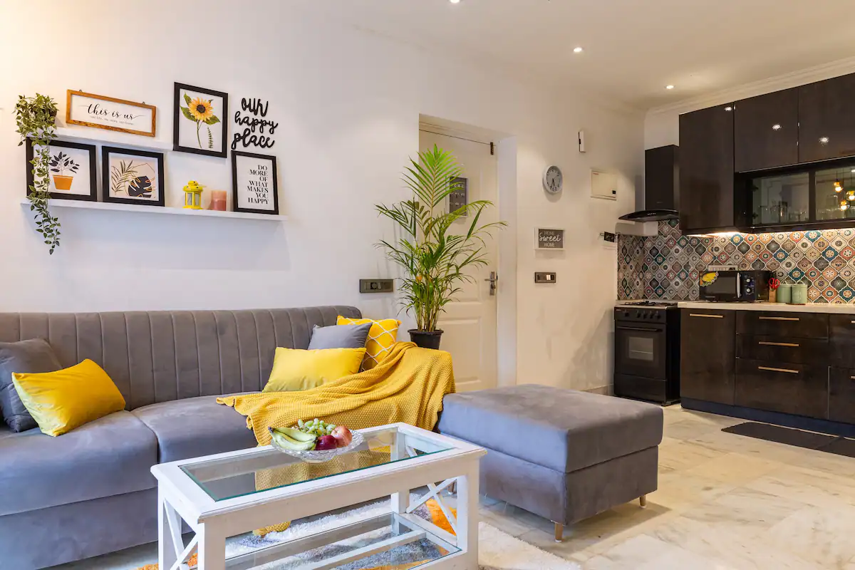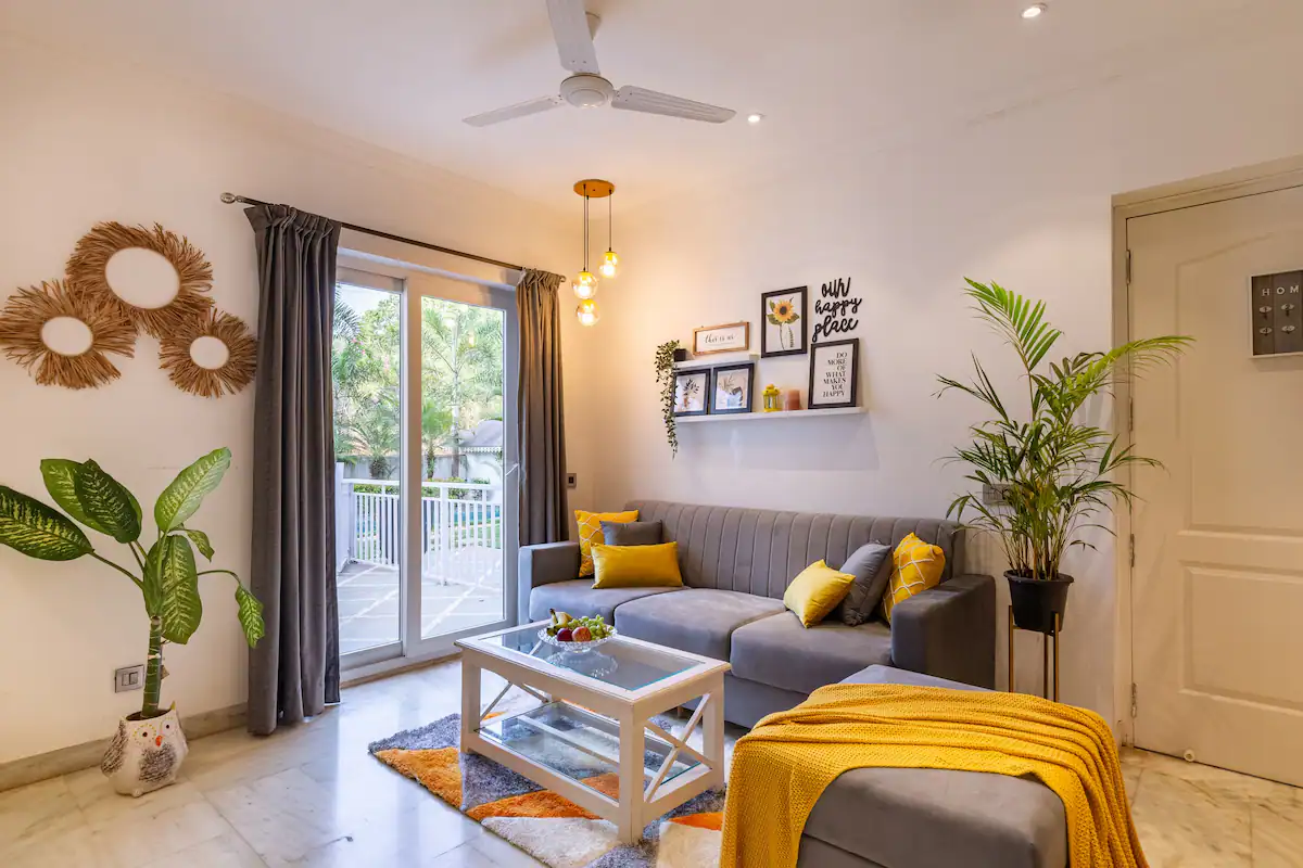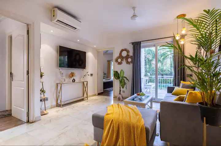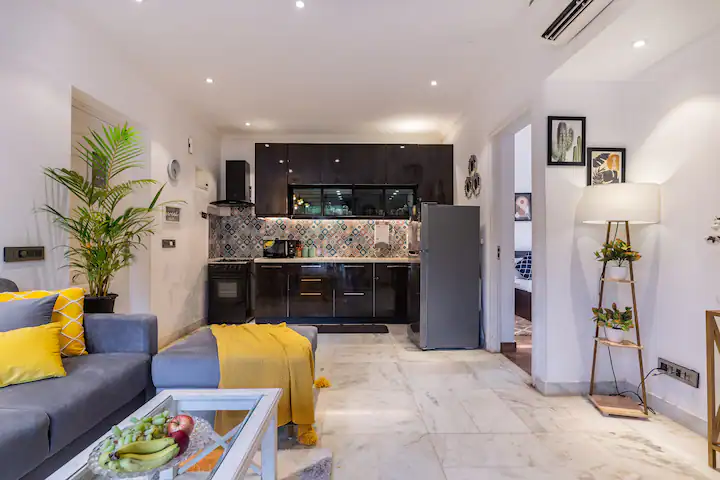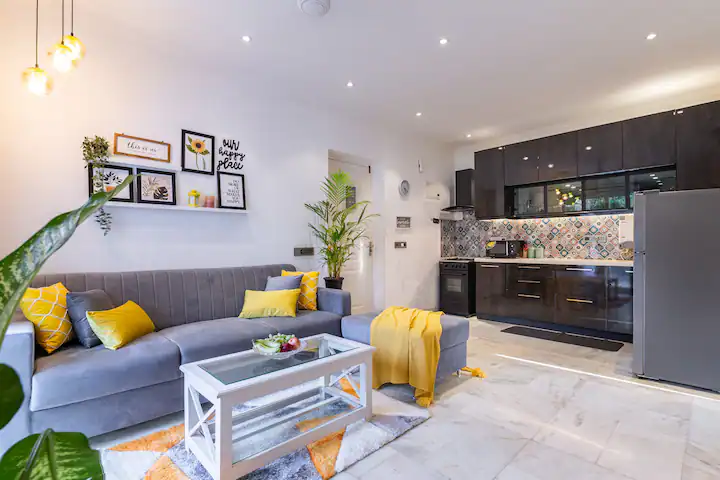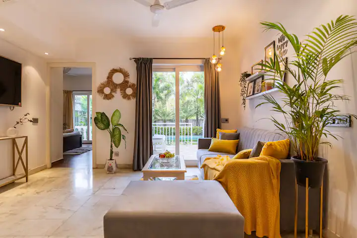 The property boasts of a well designed living room with a large screen smart TV and a well equipped kitchen with microwave ,refrigerator,gas stove ,water purifier ,cutlery ,crockery and vessels
