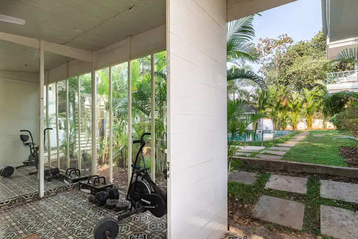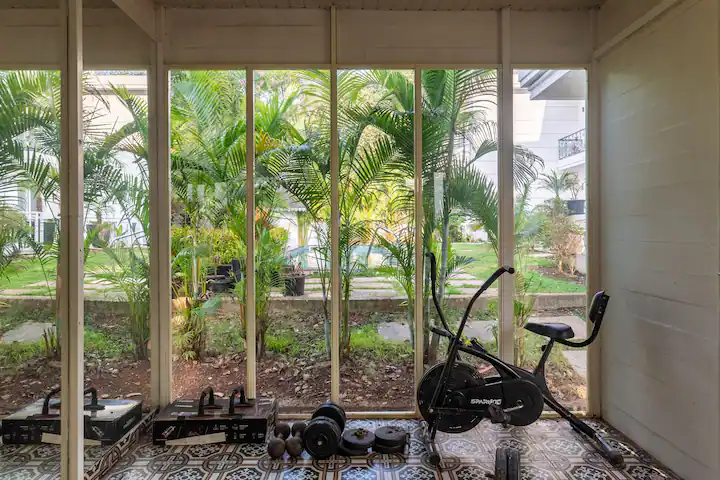 Both bedrooms have ACs each with attached ensuite bathrooms . The property overlooks the pool and a functional gym for those who would like to add some fitness goals to their holiday at ‘The Pool House ‘
